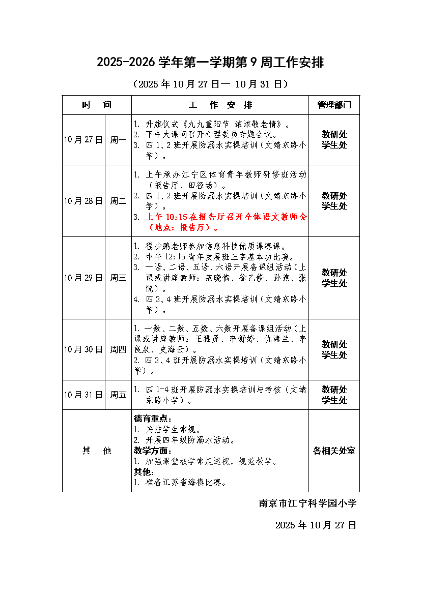 第9周工作安排