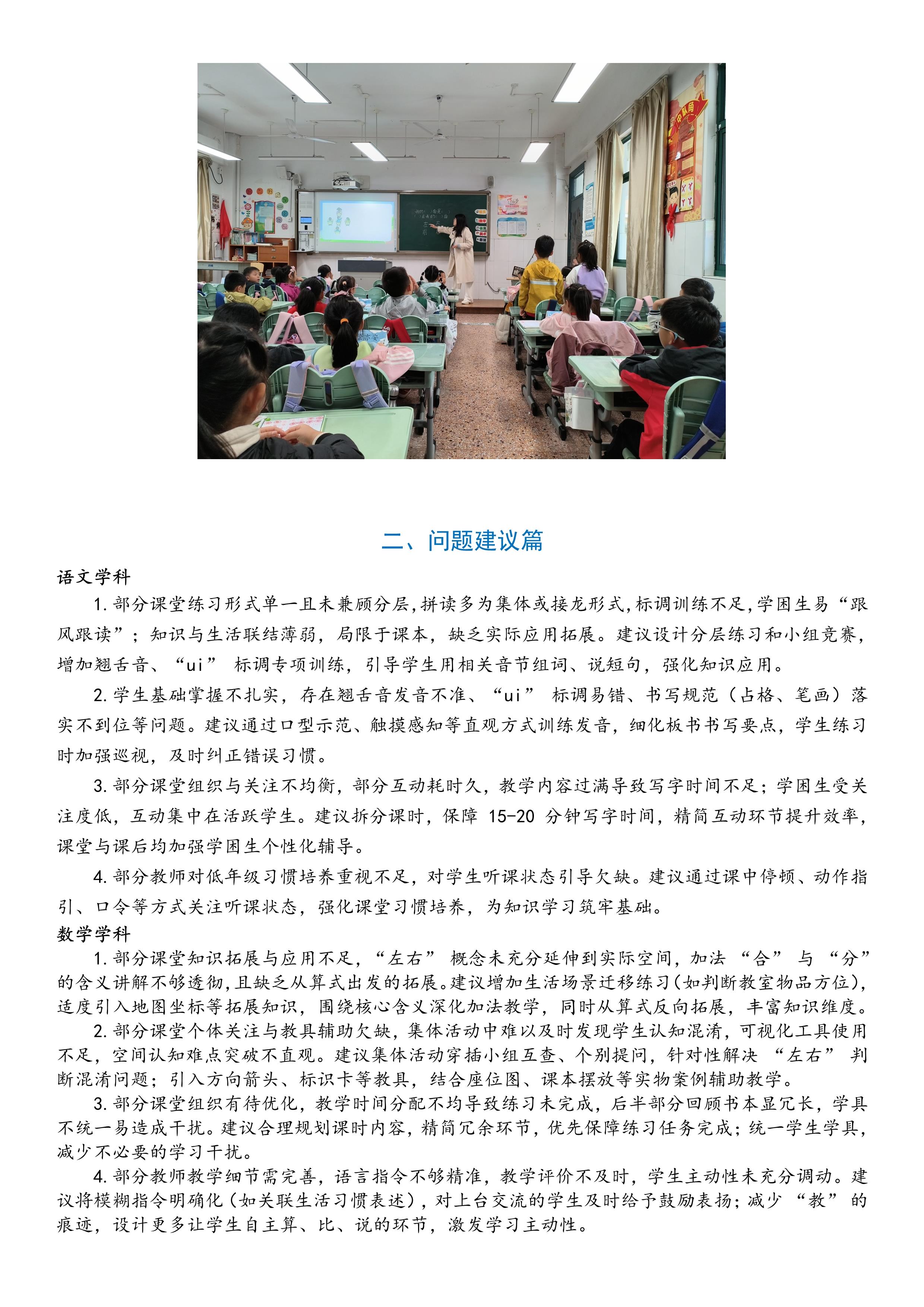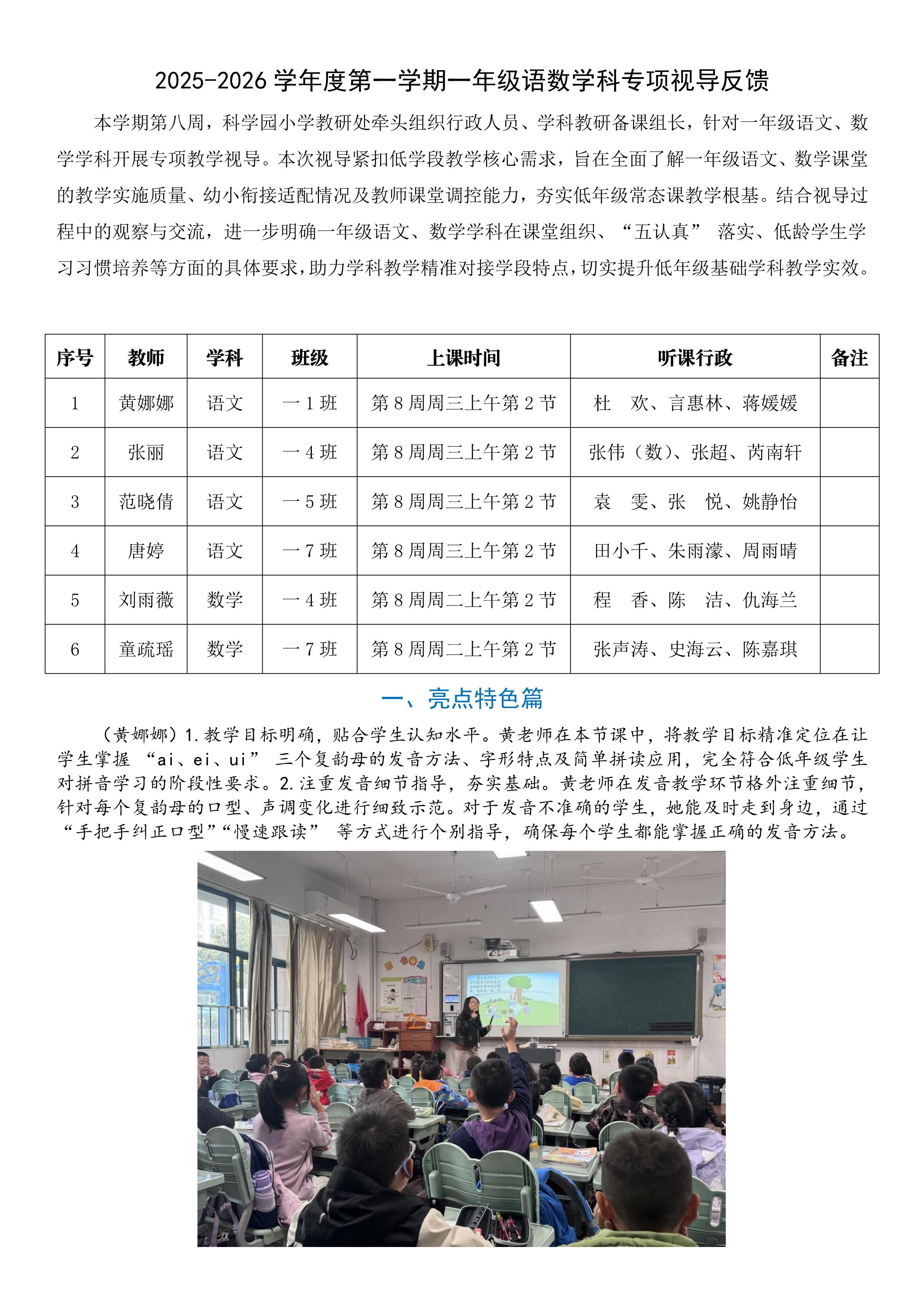 2025-2026学年度第一学期一年级语数学科专项视导反馈