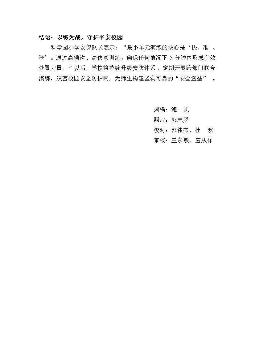 科学园小学开展最小单元应急演练活动
