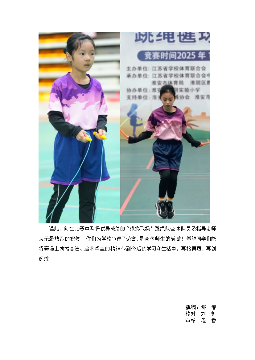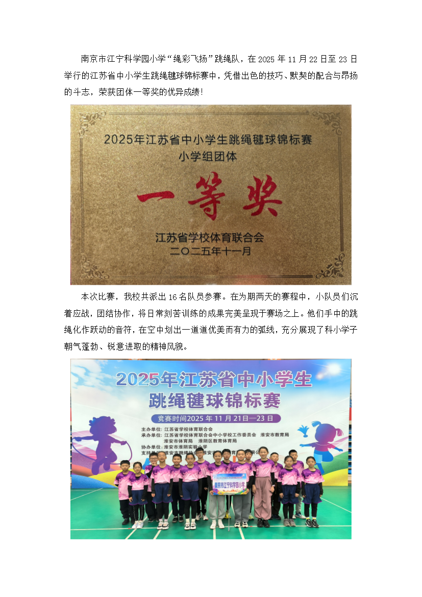 热烈祝贺我校“绳彩飞扬”跳绳队荣获省跳绳踢毽锦标赛团体一等奖