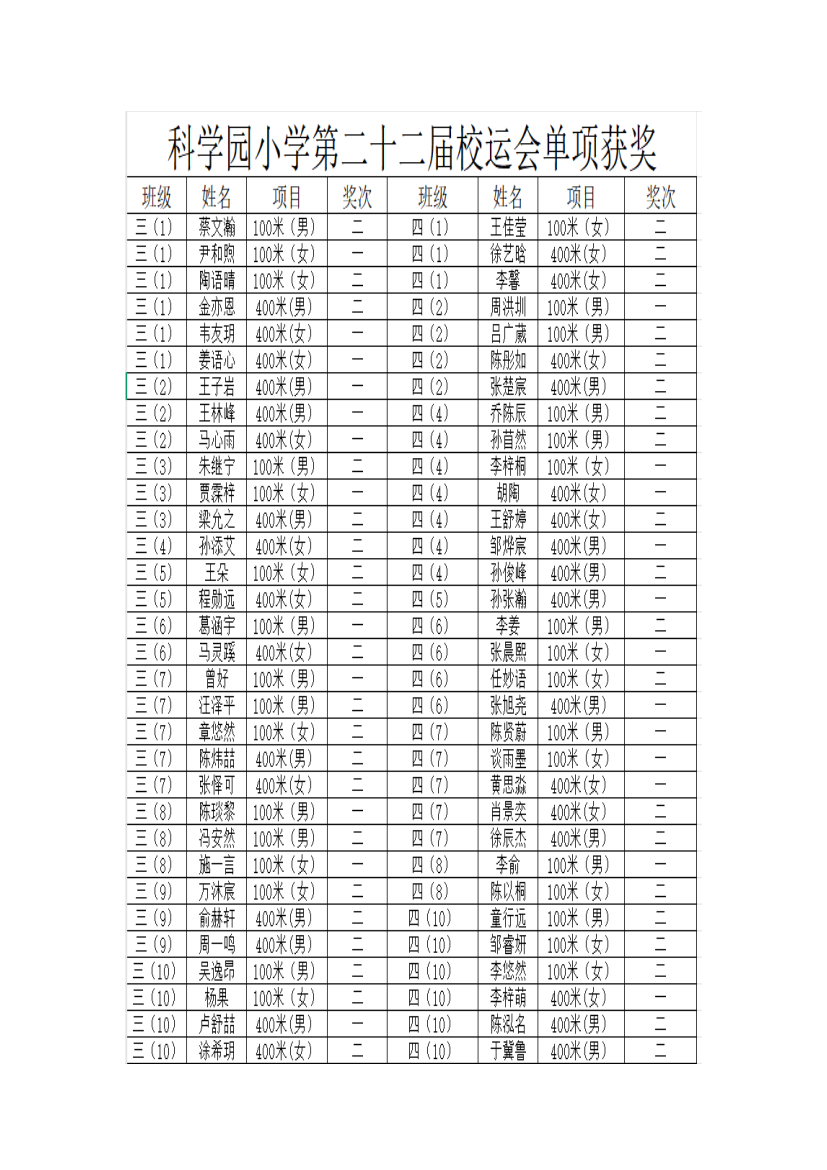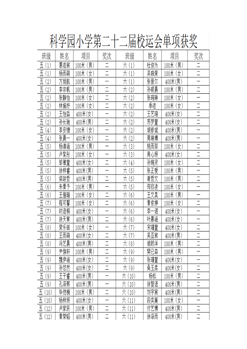 南京市江宁科学园小学第二十二届运动会成绩公示