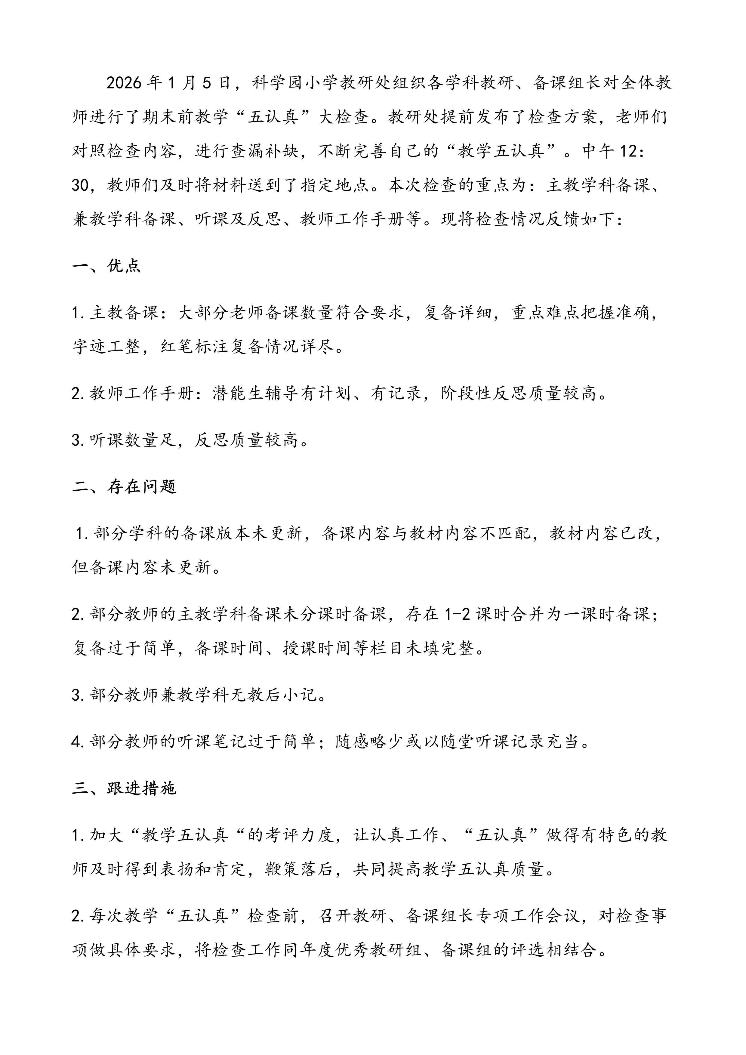 2025-2026学年度第一学期期末“五认真”检查反馈